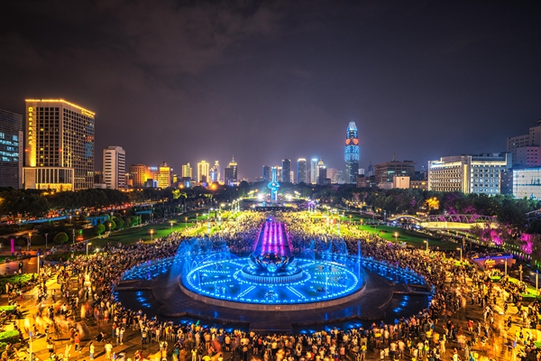 泉城廣場是濟南市的中心廣場。廣場位于市中心繁華地帶,處于“千佛山――趵突泉――大明湖”著名特色旅游區(qū)的中心,東起南門大街,西至趵突泉南路,南臨濼源大街,北依環(huán)城公園,東西長780米,南北寬230米,占地總面積約16.96萬平方米,新建建筑6.8萬平方米,地上花崗巖鋪設(shè)13萬平方米,綠化面積5.6萬平方米,工程概算總投資為13.5億元。整個泉城廣場自西往東由趵突泉廣場、南北名士林、泉標(biāo)廣場、頤天園和童樂園、下沉廣場、歷史文化廣場、濱河廣場、荷花音樂噴泉、文化長廊、四季花園、科技文化中心等十余部分組成。