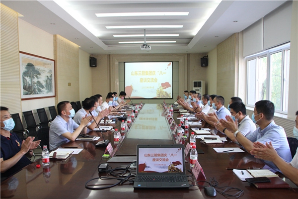 8月1日上午,為慶祝建軍93周年,山東三箭集團黨委舉辦大型慶“八一”專題活動,特邀山東省住房與建設(shè)廳二級巡視員都昌林來企業(yè)座談并作報告。三箭集團優(yōu)秀軍轉(zhuǎn)干部代表、工會主席黃建華主持,集團黨委及各子公司有關(guān)領(lǐng)導(dǎo)、政工干部,全體在崗復(fù)轉(zhuǎn)軍人約150人參會。